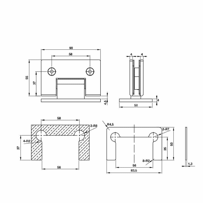 Bản lề kính-tường 90 độ Bauma 981.77.945