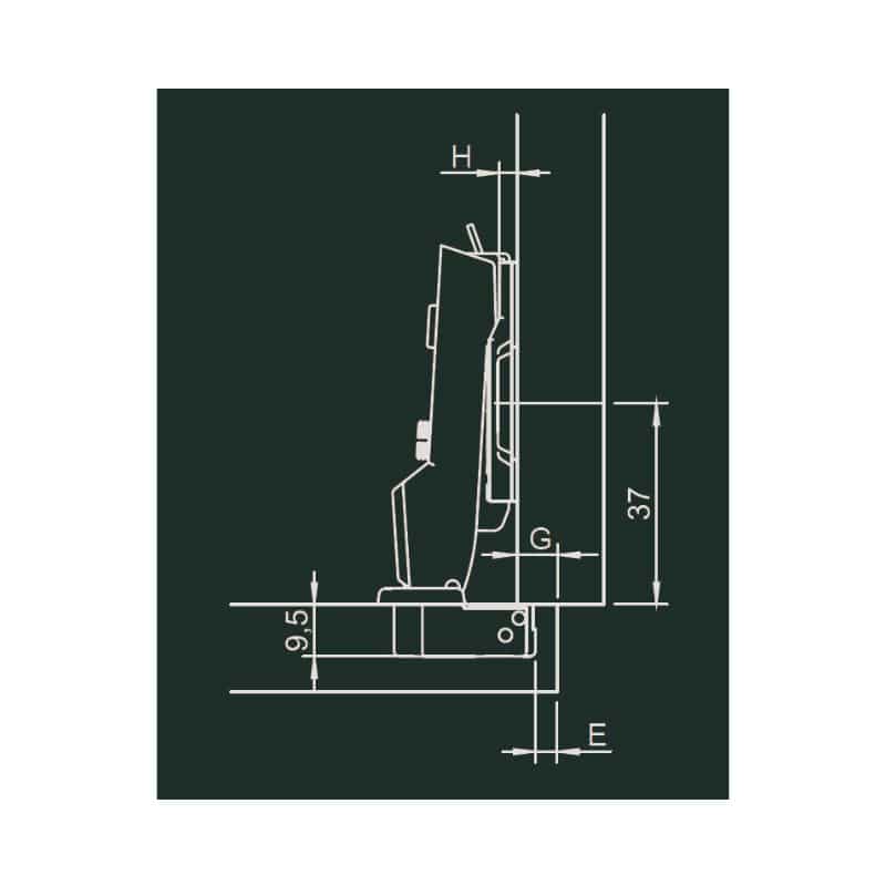 Thông số kĩ thuật của bản lề Metalla SM giảm chấn 95 độ MINI lắp gài trùm ngoài Hafele 311.04.441