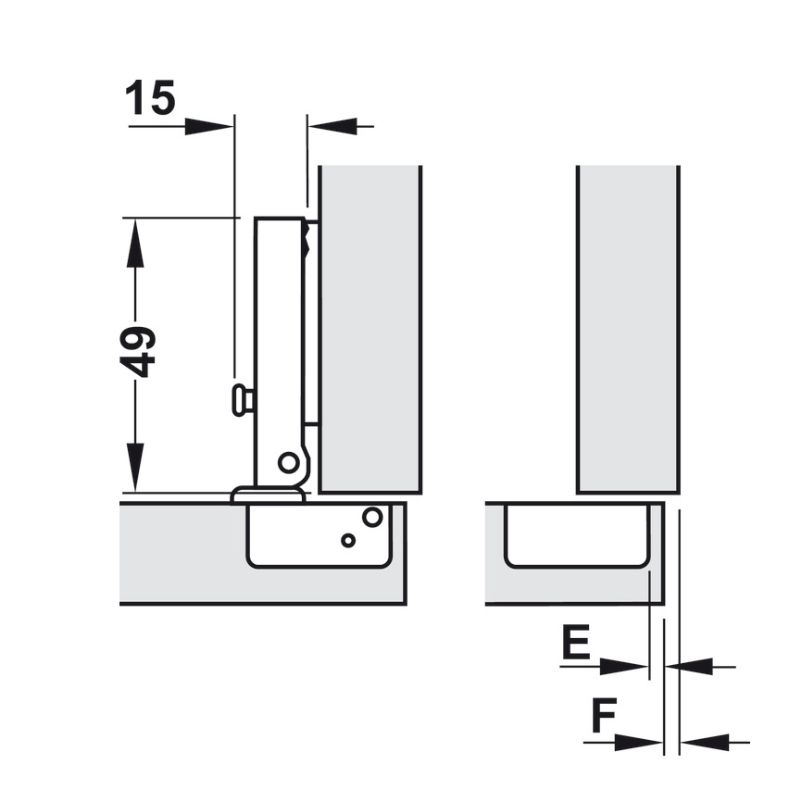 - Bản lề tủ dạng thẳng Mini, lắp đặt trùm ngoài