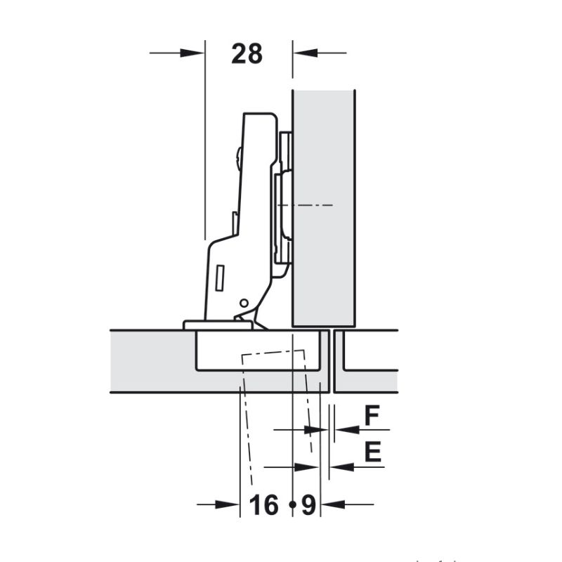 Bản lề trùm nửa Metalla A 95º cho cửa dày Hafele 311.81.505