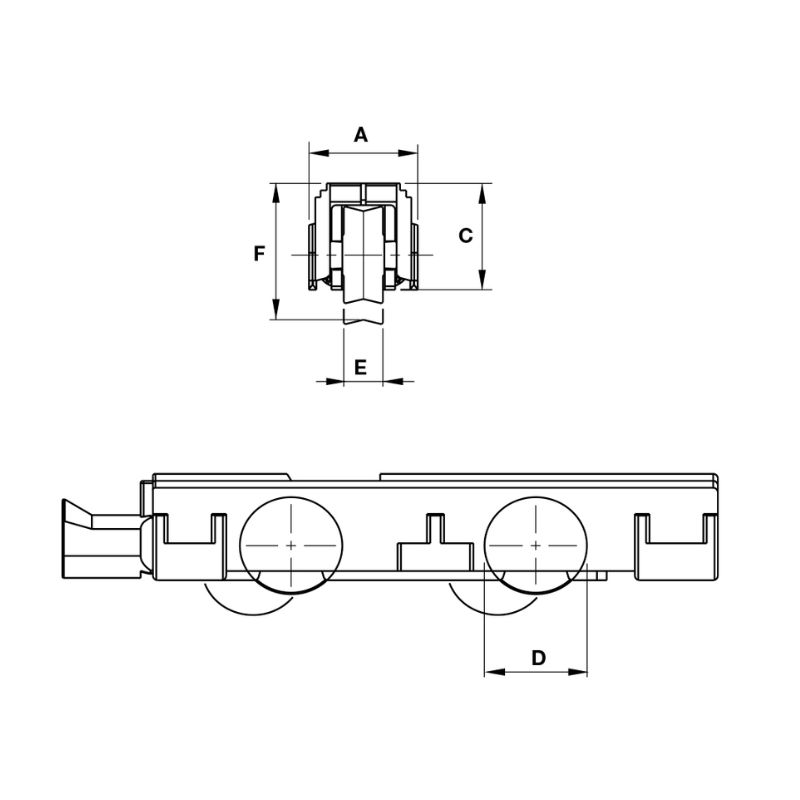 - Bánh xe cửa trượt cửa nhôm, 2 con lăn