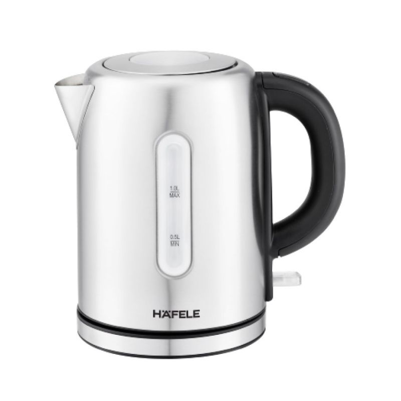 - Bình đun siêu tốc Hafele thiết kế sang trọng, vỏ bình bằng inox 304 sáng bóng, dễ dàng vệ sinh và không bị oxi hóa