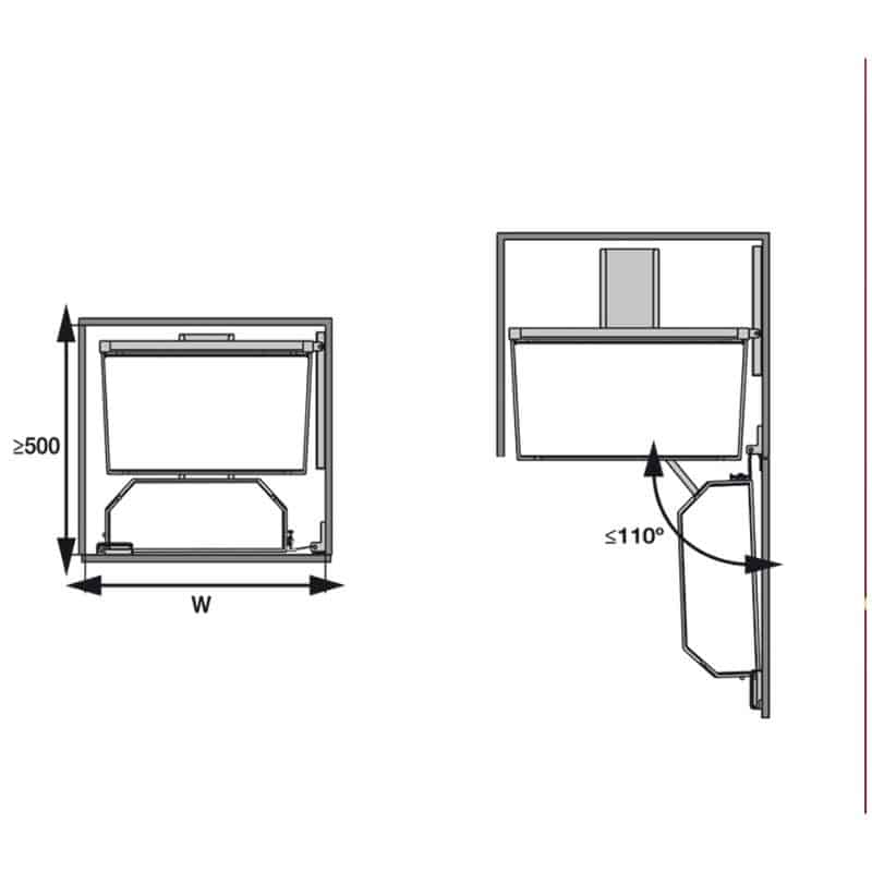 - Sử dụng cùng bộ khung để lắp đặt bên trái và bên phải – dễ dàng chuẩn bị lắp đặt – không phụ thuộc vào chiều cao tủ