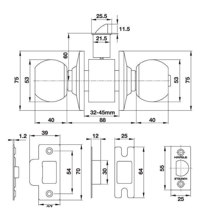 Bộ khóa tay nắm tròn cửa WC Hafele 489.93.135