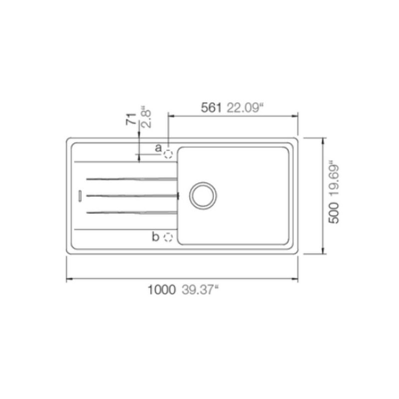 - Kích thước tổng thể chậu với chiều dài 100 cm – chiều rộng 50 cm, có thể lắp âm, là lựa chọn thích hợp dành cho các căn bếp diện tích vừa trong khu chung cư, nhà ở.