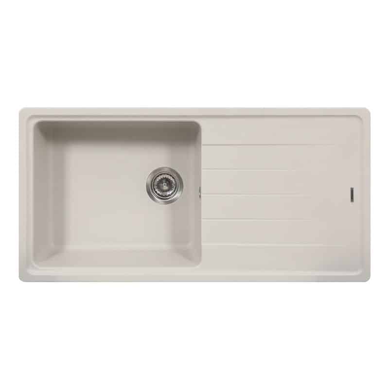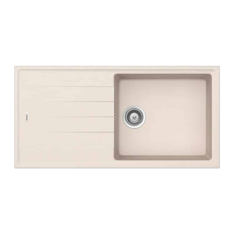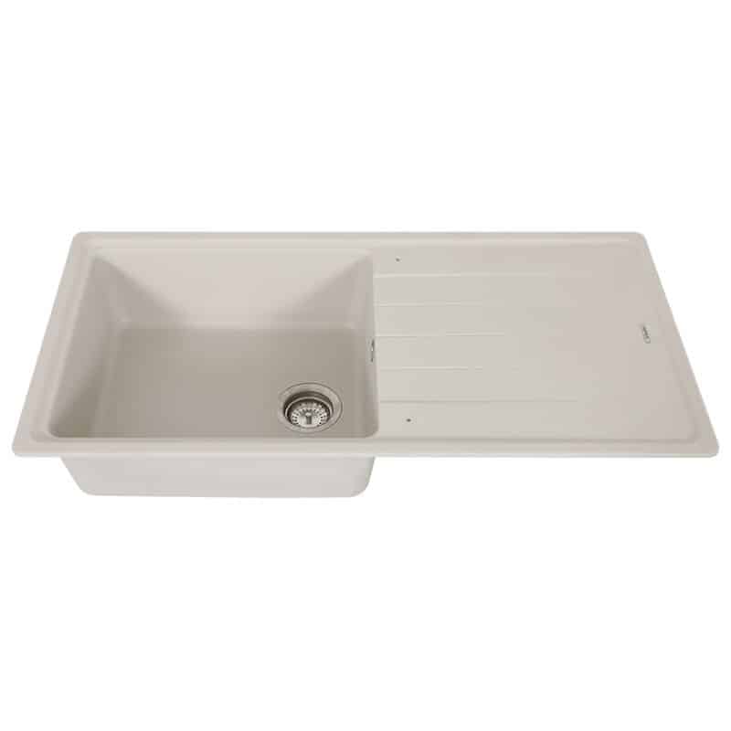 - Chậu rửa chén có kiểu dáng hình chữ nhật với màu kem trang nhã, sang trọng phù hợp với mọi không gian bếp.