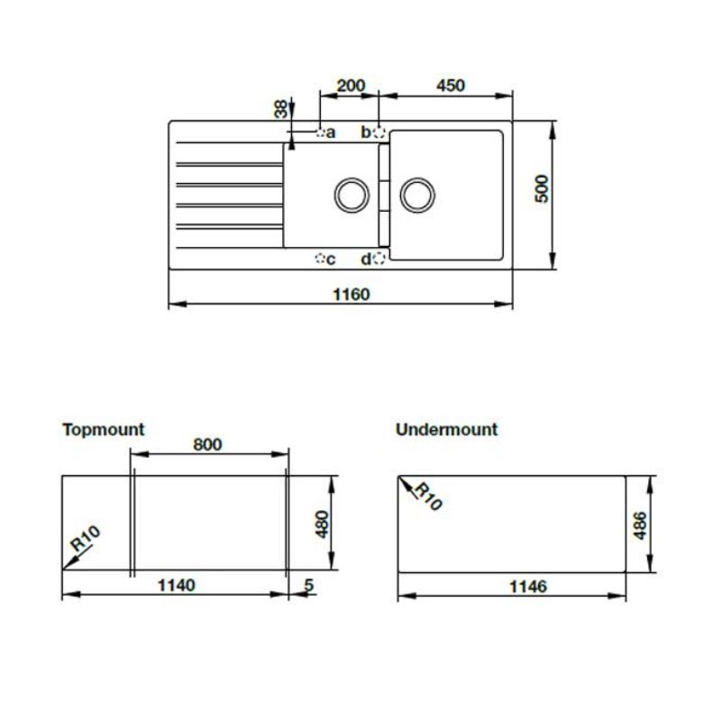- + Lắp âm 1146 x 486 mm