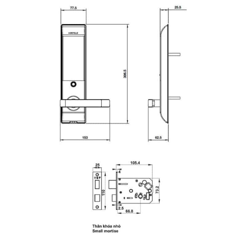 - Kích thước đố cửa phù hợp: Độ dày cửa: 38 – 90 mm, Đố cửa : 120 mm