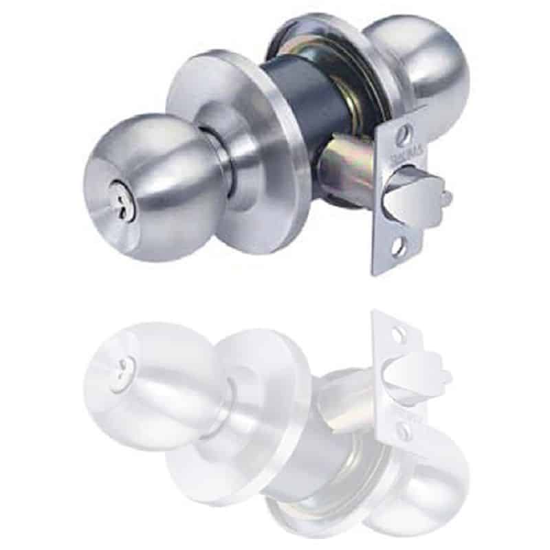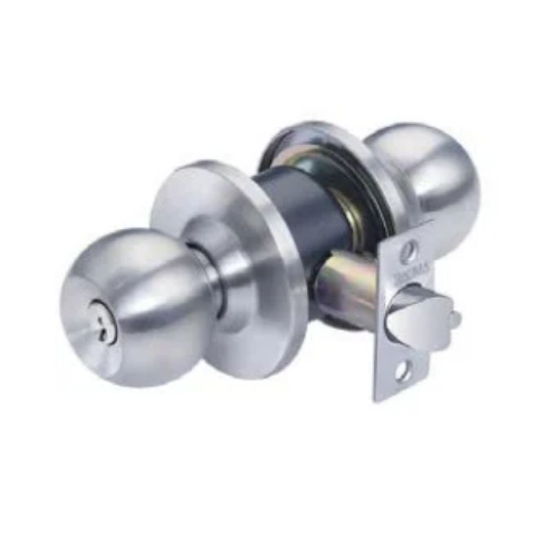 - Trọn bộ gồm: 1 khóa tay nắm tròn, 1 cò khóa, 1 bas khóa, 3 chìa khóa (loại cửa phòng), Vít