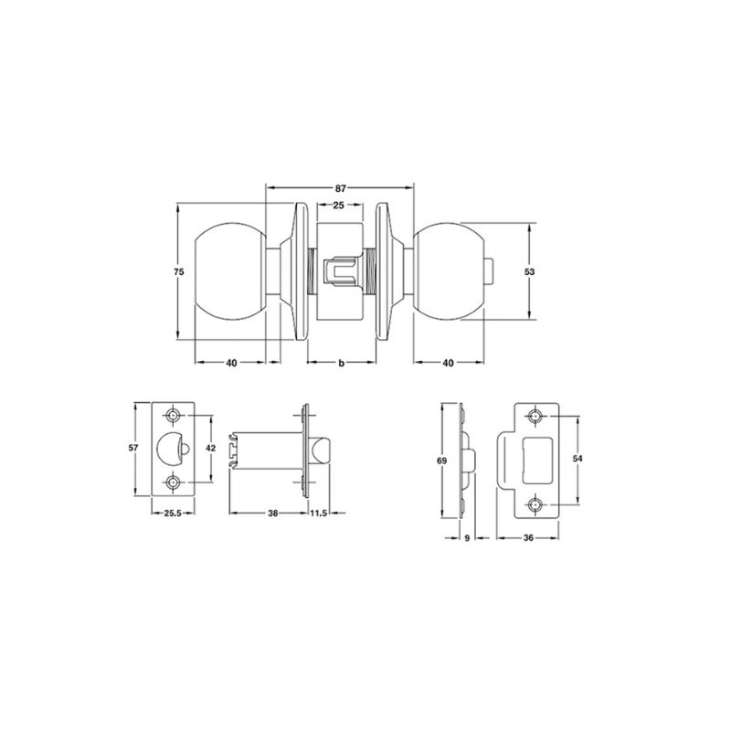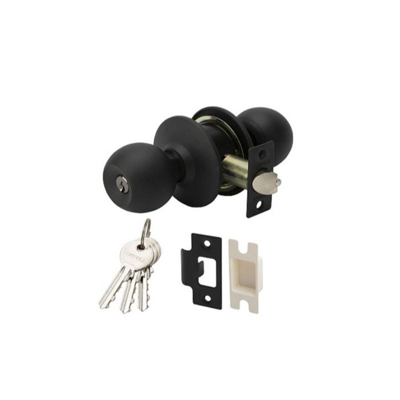 - Trọn bộ gồm : 1 khóa tay nắm tròn, 1 cò khóa, 1 bas khóa, 3 chìa khóa, 1 bộ vít, 1 hướng dẫn lắp đặt