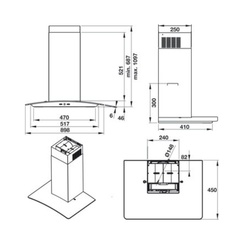 Máy hút khử mùi kính cong Hafele HH WG90B 539.81.185