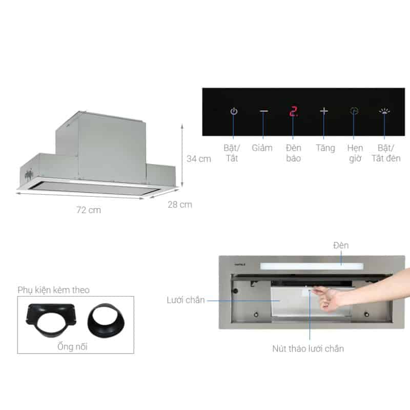 Một thiết kế hiện đại và mới mẻ của Hafele, máy hút mùi âm tủ HH-BI72A sẽ là một bất ngờ dành cho người tiêu dùng yêu thích sự gọn gàng ngăn nắp trong không gian bếp. Thiết kế lắp đặt ẩn chìm trong tủ, công suất hút đạt đến 1050m3/h cùng khả năng vận hành ổn định, độ bền cao đặc biệt là điều khiển cảm ứng dễ dàng sử dụng, chiếc máy hút mùi này là thiết bị đáng để đầu tư cho gia đình.