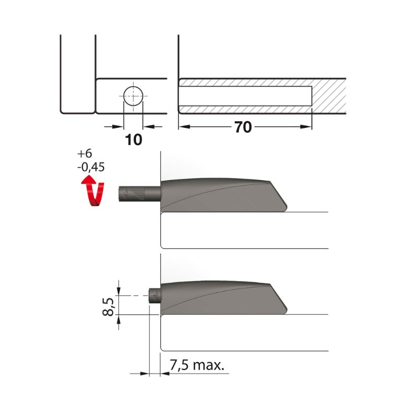 Nêm nhấn dài đầu cao su Hafele 356.12.517