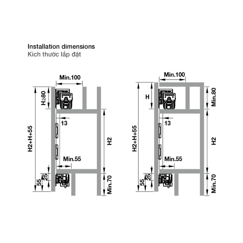 - Chiều rộng cửa : 300 600mm