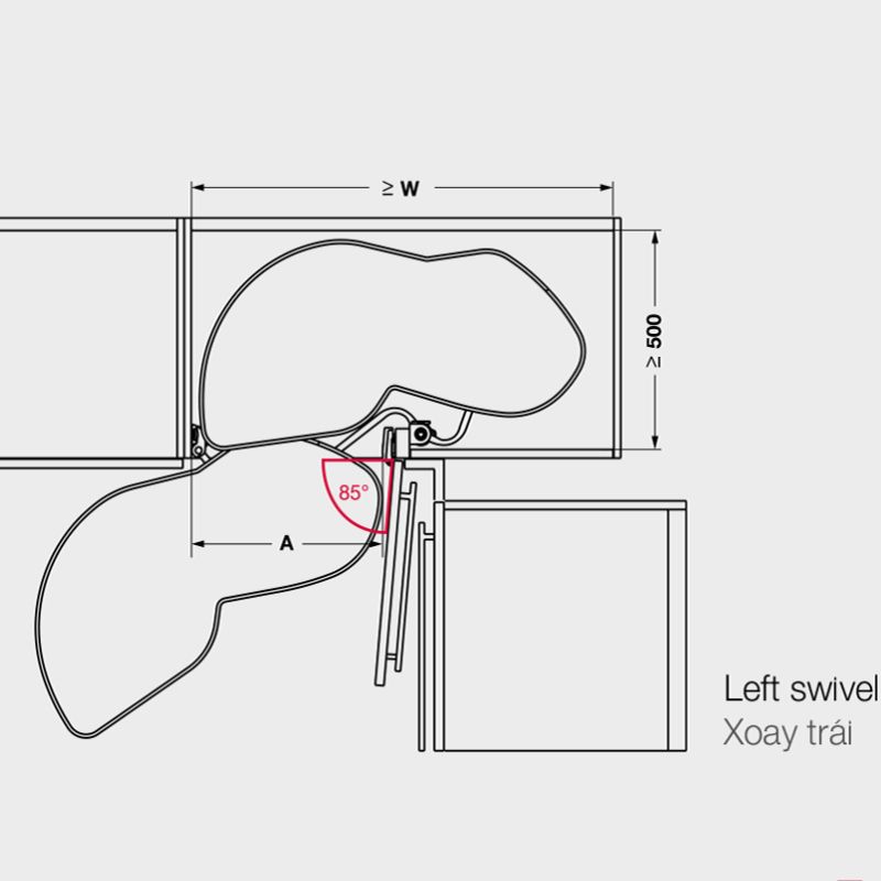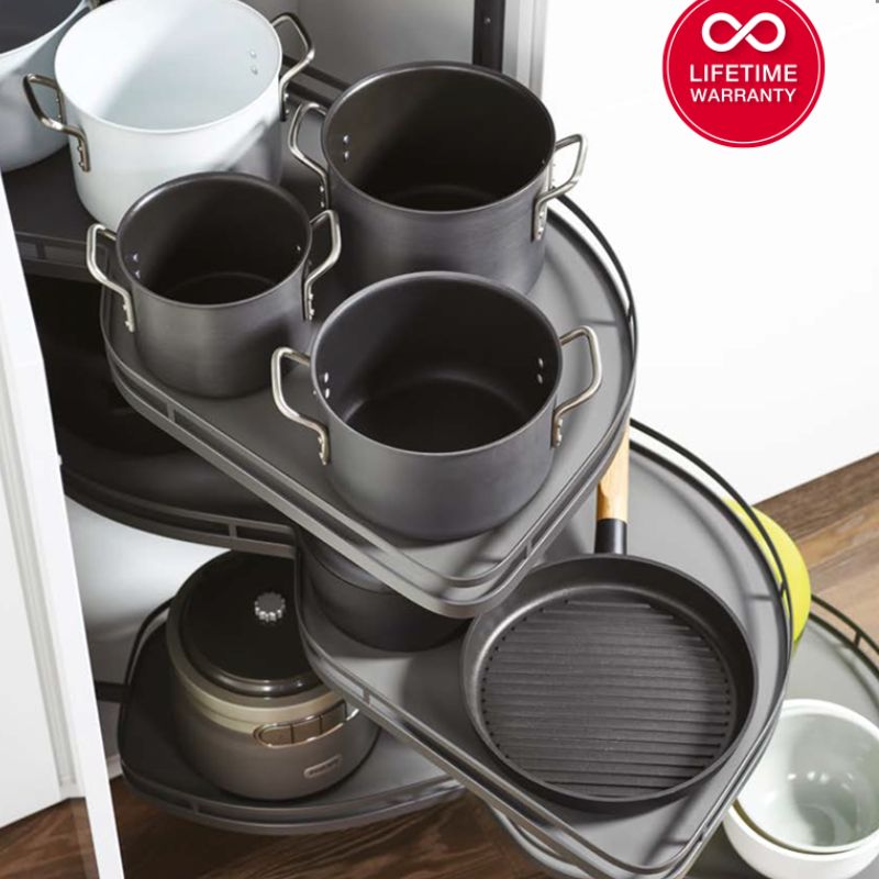 Rổ góc LeMans II 4 khay màu đen xoay trái Hafele 541.29.483