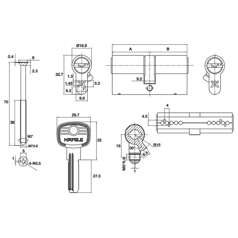 - Ruột khóa 2 đầu chìa với 5 chìa