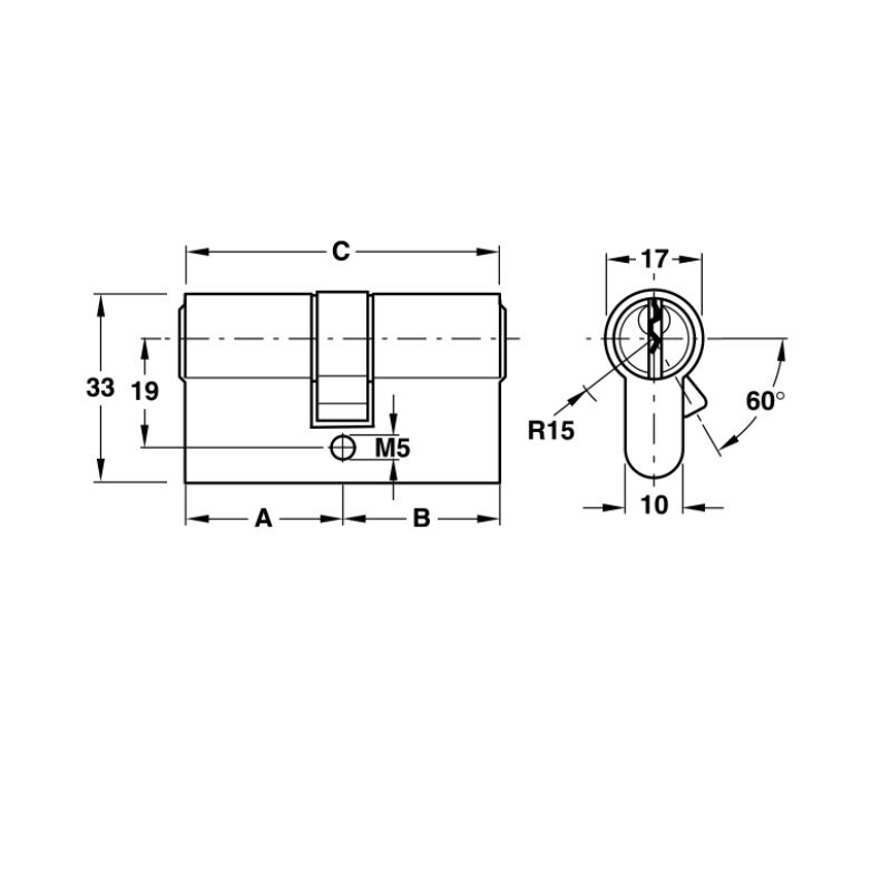 Thông số kĩ thuật của ruột khóa 2 đầu chìa Hafele 916.64.912