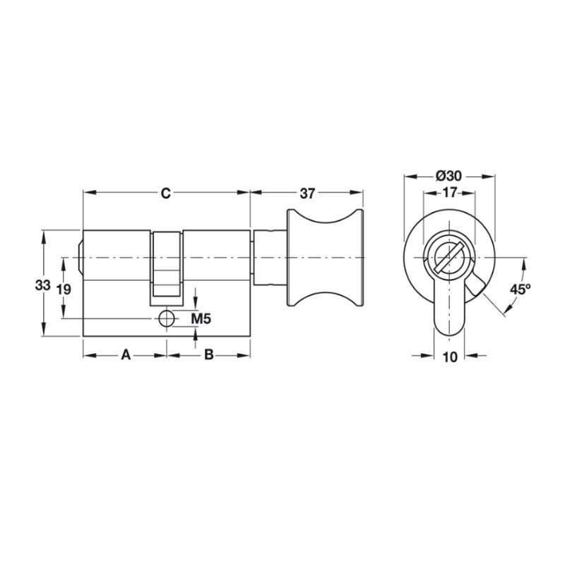 Ruột khóa cho cửa phòng vệ sinh Hafele 916.08.525, 71mm Đồng thau