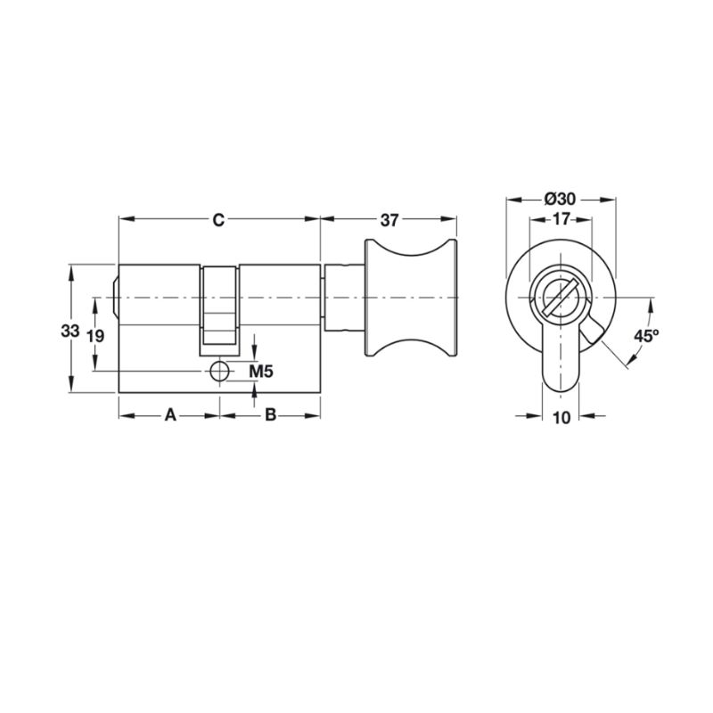 Ruột khóa cho cửa phòng vệ sinh Hafele 916.08.727, 91mm Đồng thau