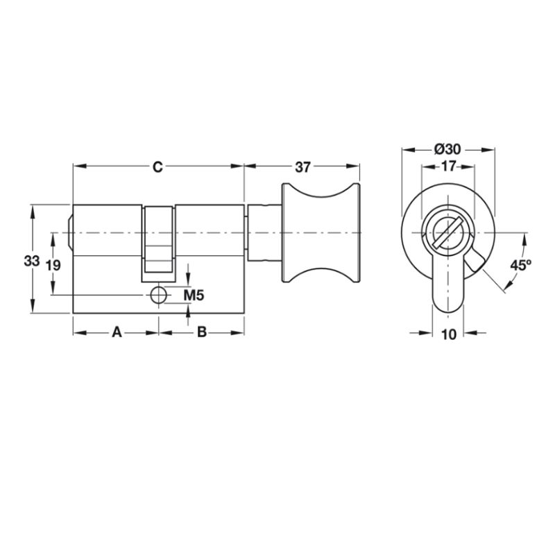 Ruột khóa cho cửa phòng vệ sinh Hafele 916.08.728, 101mm Đồng thau