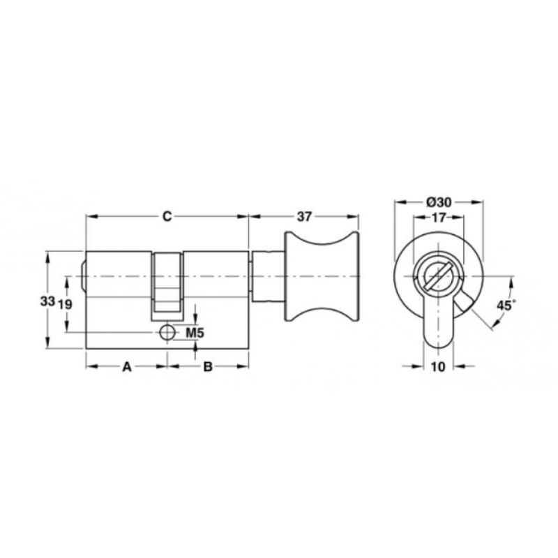 Thông số kĩ thuật của ruột khóa cho cửa phòng vệ sinh Hafele 916.08.926