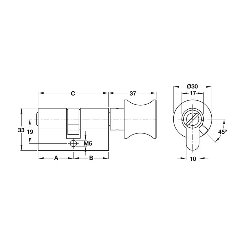 Thông số kĩ thuật của Ruột khóa cho cửa phòng vệ sinh Hafele 916.96.689