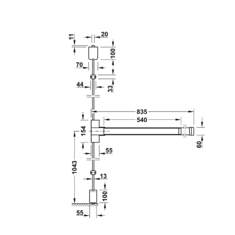 Tính năng thanh thoát hiểm với thanh chốt dọc Hafele 911.56.035