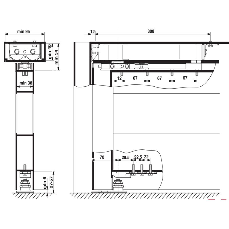 - Độ dày cửa tối thiểu : 45mm
