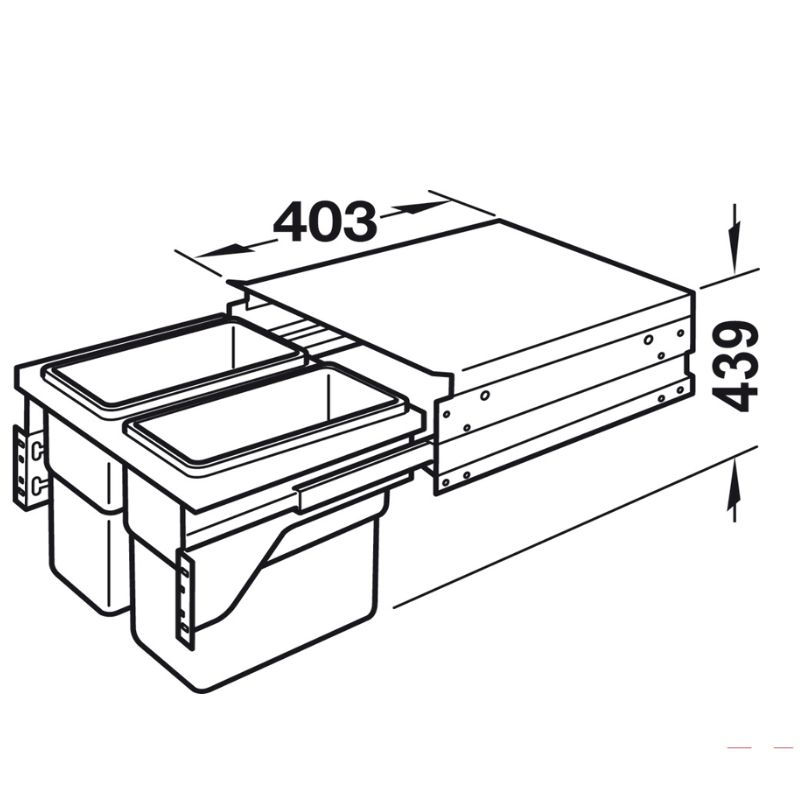 Thông số kĩ thuật của thùng rác gắn cánh Hafele 2x30L cho tủ 450mm 502.73.901