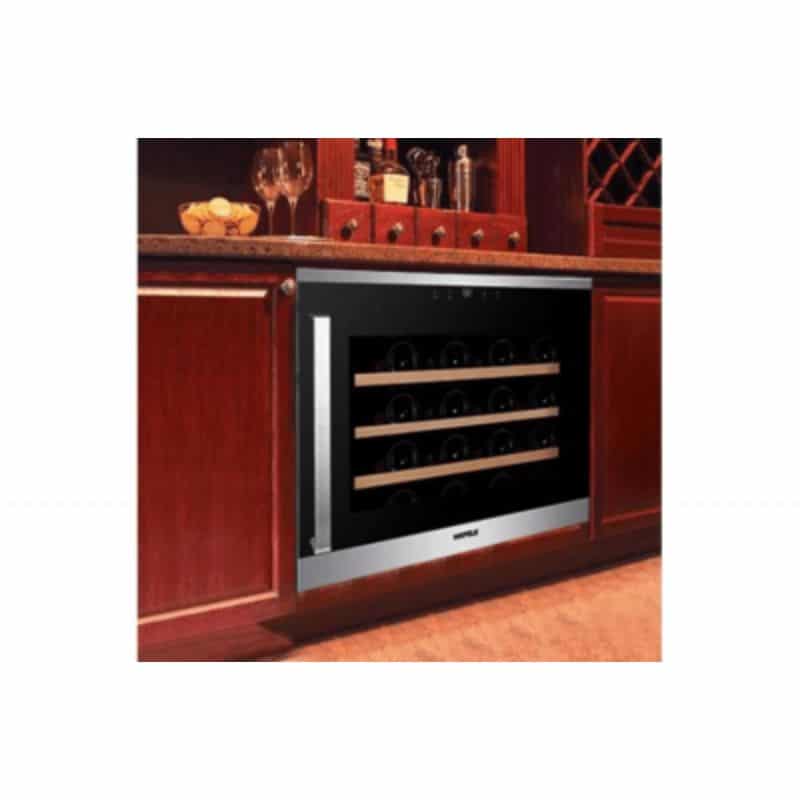 - Sức chứa phù hợp: tủ rượu có dung tích chứa 18 lít, tương đương với 24 chai (0.75L/ chai).